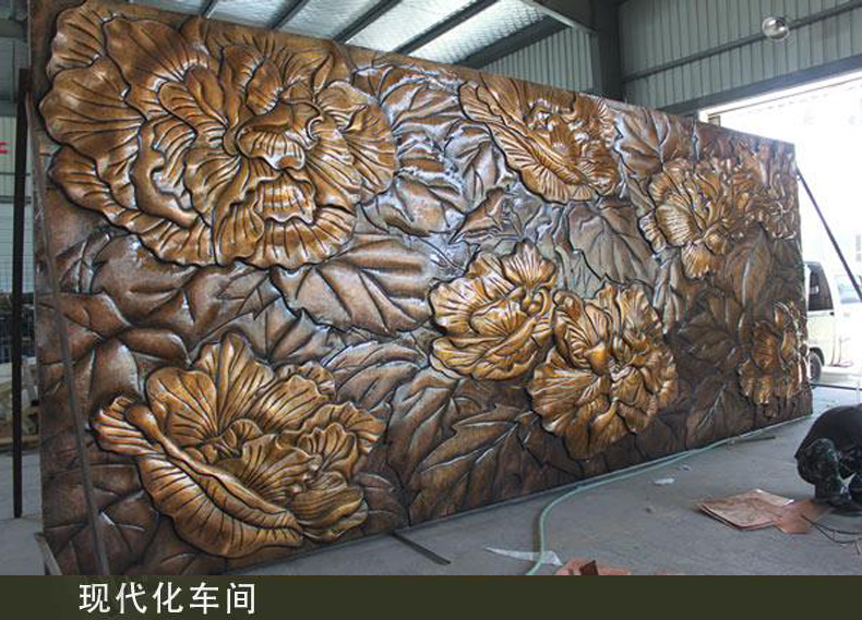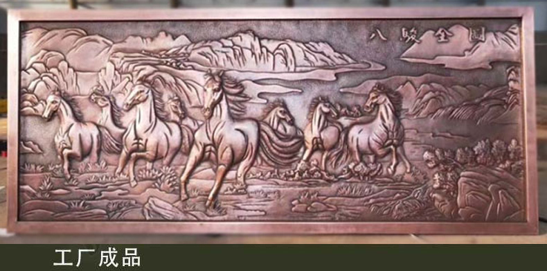 銅浮雕是浮雕藝術的一種,設計好圖案后,按照一定的工藝流程,以特制的工具和特定的技法,在金屬板上加工出千變?nèi)f化的浮雕狀圖案。